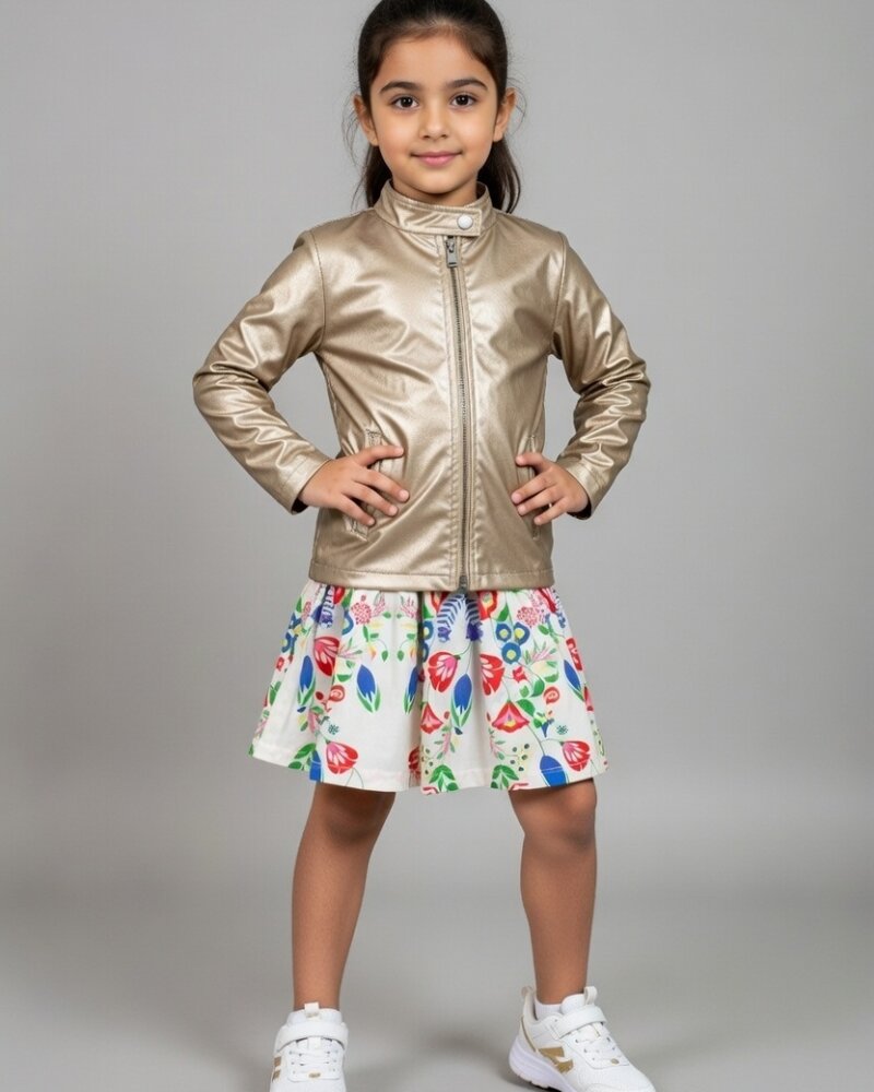 جاكيت جلدي ذهبي للبنات