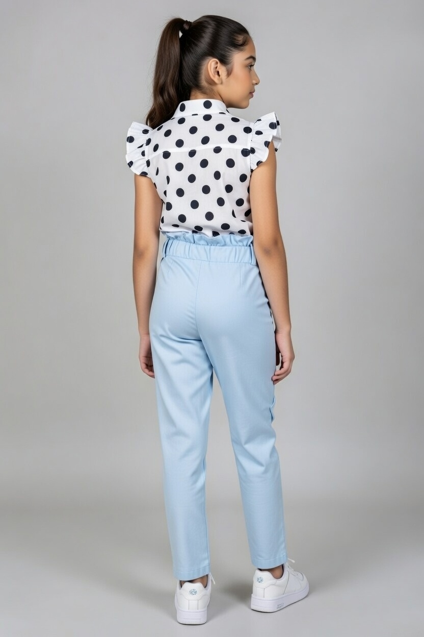 Pantalon chic fille bleu avec taille froncée