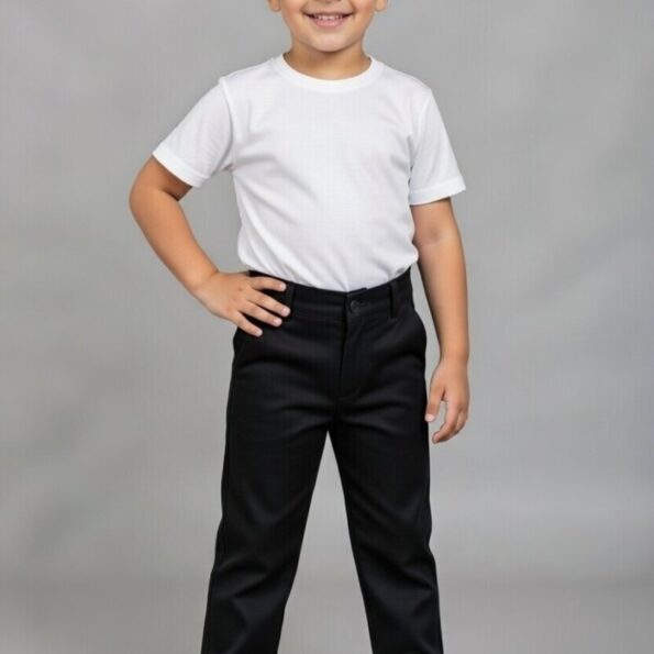 Ce pantalon noir en tissu confortable est parfait pour les occasions formelles. Sa coupe élégante avec une taille ajustable et des poches latérales assure un style raffiné tout en étant pratique. Idéal pour les cérémonies ou les sorties en famille, il apporte une touche chic à la garde-robe de votre garçon. Offrez-lui le meilleur avec ZARIF, synonyme de qualité et d’exclusivité.
