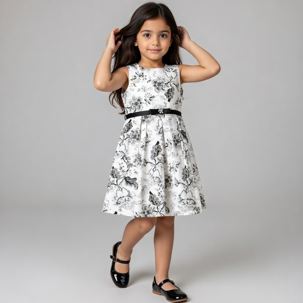 Élégance et raffinement définissent cette sublime robe de cérémonie pour fille.