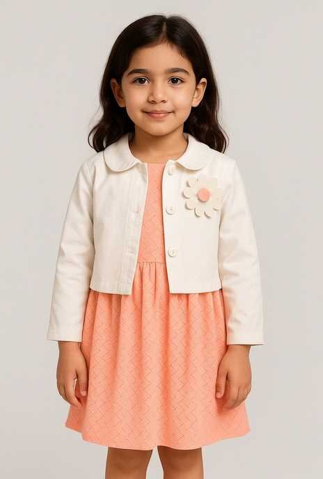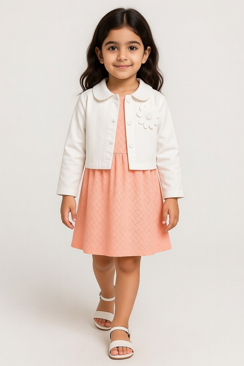 Robe fille rose avec cardigan blanc