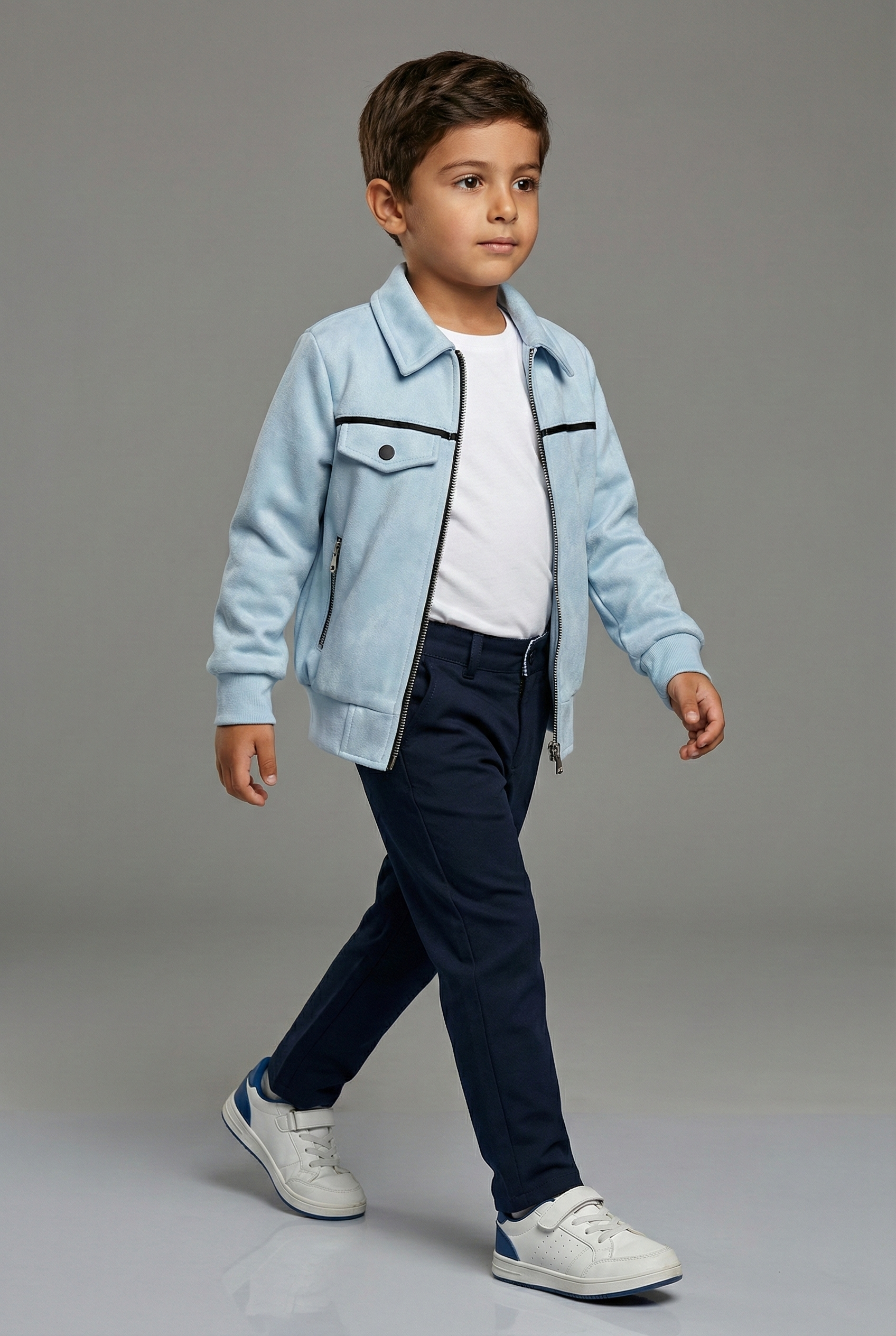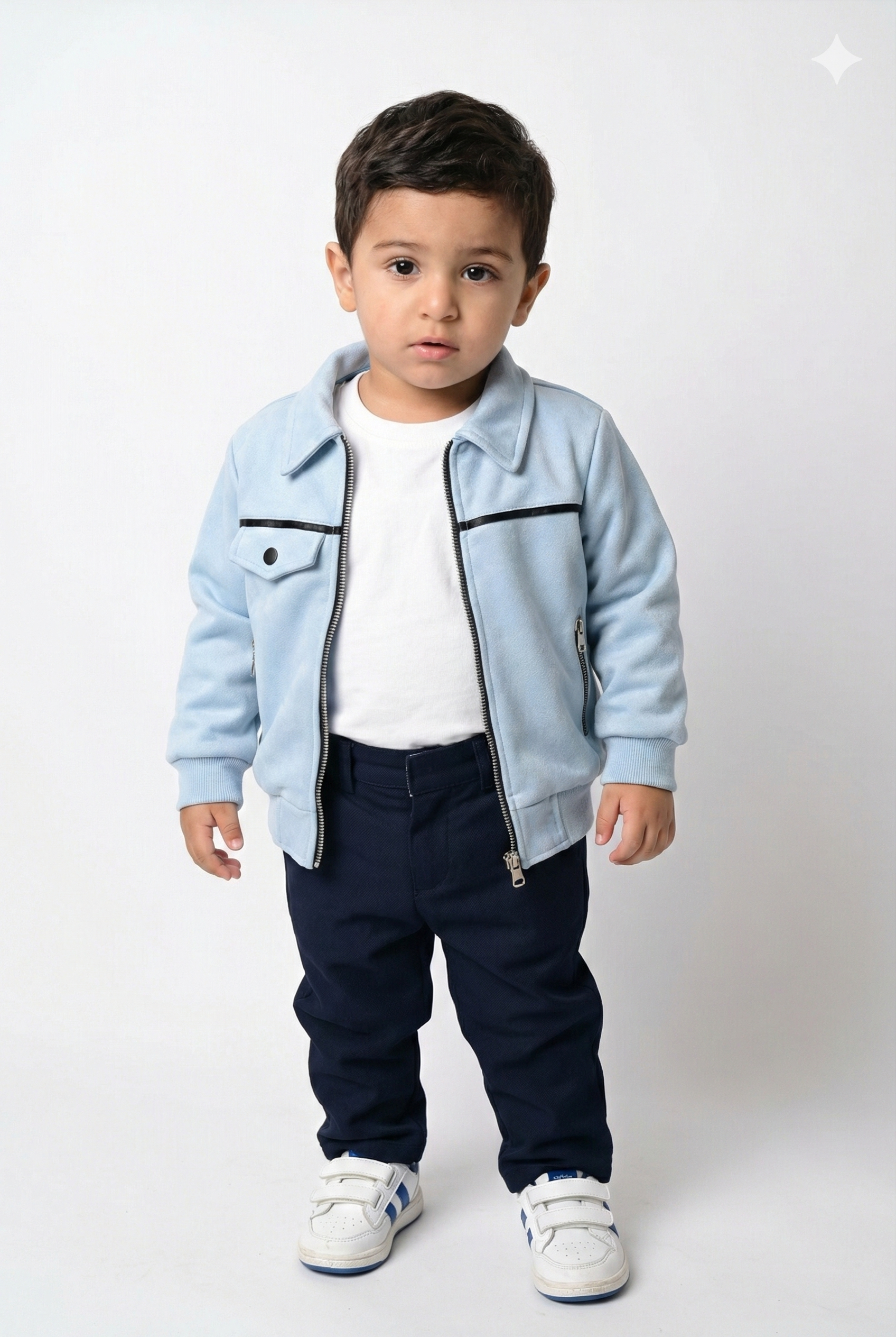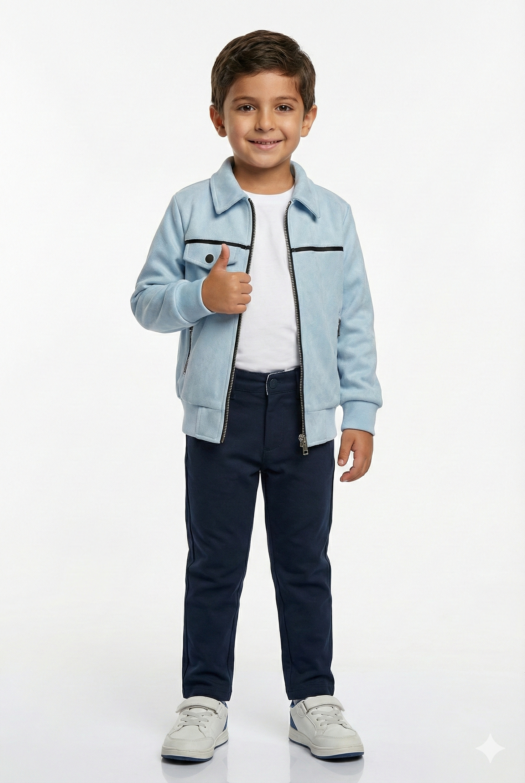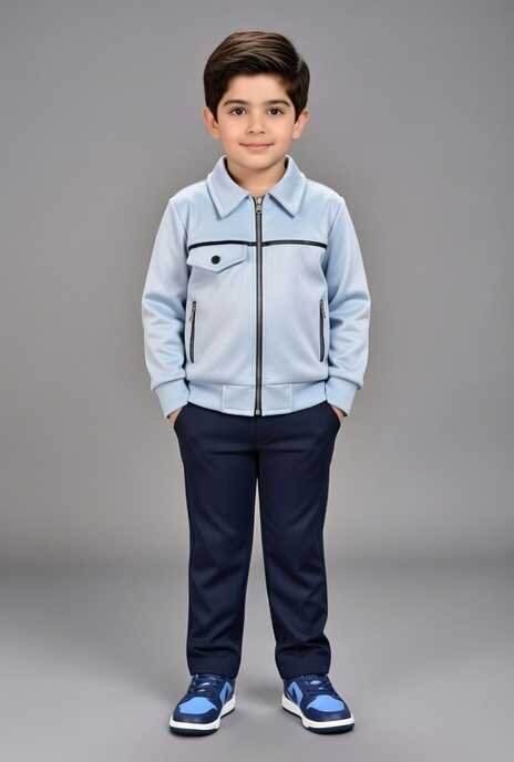 Cette veste pour garçon en en suédine bleu ciel est à la fois légère et résistante. Elle présente une coupe moderne avec un col classique et des manches longues, parfaite pour un style décontracté. Idéale pour le quotidien ou les sorties estivales, elle apportera une touche tendance à la garde-robe de votre enfant. ZARIF garantit qualité et style exclusif pour chaque pièce.